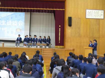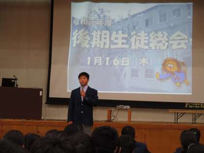 2年生を中心とした生徒会めんばーによる生徒総会が行われ、各発表者が堂々とわかりやすく発表していました。校長先生の最後のまとめのことばの時も、しっかり聞いている2年生の姿が見られました。良い嘉楽中学校を作り上げていきましょう。