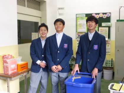 正門前では、生徒会本部がペットボトルキャップの回収をしていました!