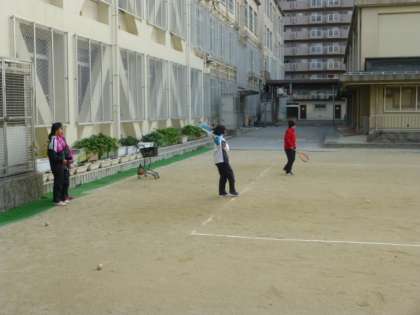 朝練習に励んでいるソフトテニス部です。