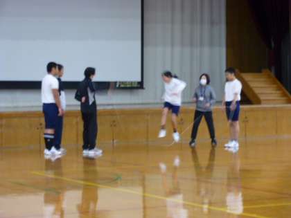体育で、みんなで協力しての縄跳びです。うまく跳べるかな?