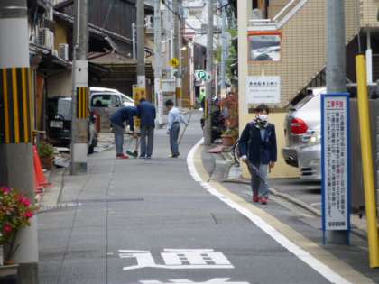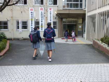 今朝は今のところ、雨は止んでいます。みんな元気に登校しています!