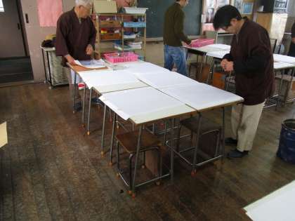 昨日の伝統文化体験の様子です。午前中より職人の方が来てくださり、念入りに準備いただいています。評議員の進行ですすめてくれました。