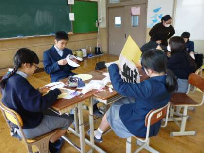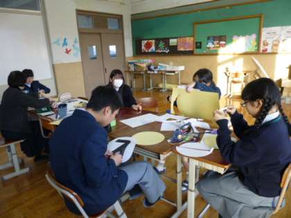 ワイワイ楽しみながら、3年生を送る会の飾りを作っていました。