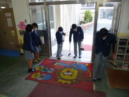 校舎入口では、ライオンのマットがきれいに・・!