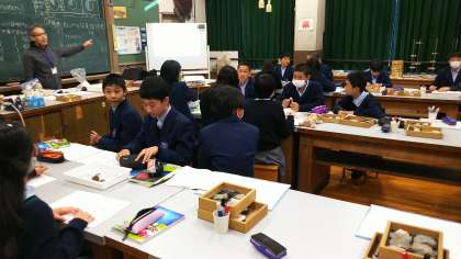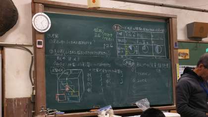 1年2組は理科です。火山岩や深成岩の違いについて学習しています。