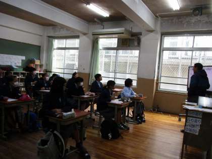 昨日に引続き2年生は6限、平和について考える学習を行いました。戦後の基地の状況について知りました。沖縄について考えることがたくさんあることを学びました。