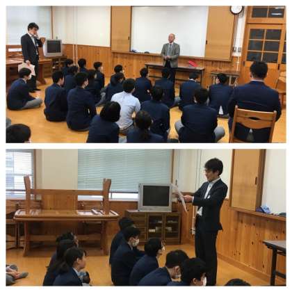 終学活後に、来週17、18日に行われる公立前期選抜の受検者の人たちが集まりました。校長先生から、3つのポイントと「平常心」という言葉をいただきました。