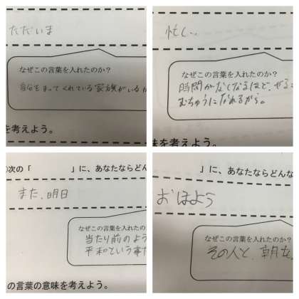 ●私は「さよなら」と言うときとくに何も考えていなかったけど、今日の授業で誰も予測できない出来事が起こって、突然の別れが来てしまったとき、別れの言葉を言えるか言えなかったことではすごく変わるのかなと思った。