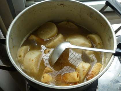昨日作ったおでん(みんなが育てた大根を使った)が残っていたので写真を撮りました!美味しそうです!昨日食べていただけなかった先生方に、このあとに味見していただくそうです。