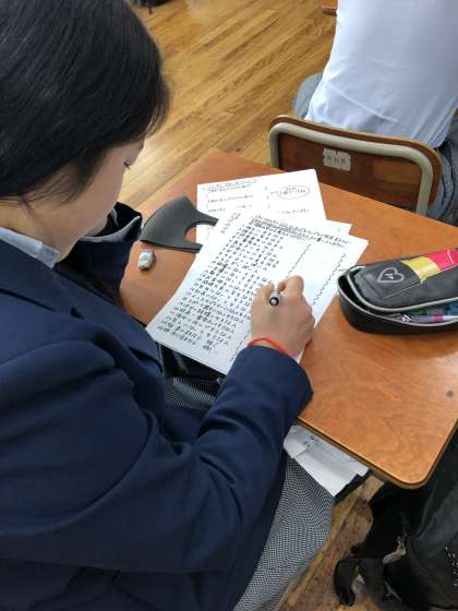 学活での様子です。アンケートに答えています。