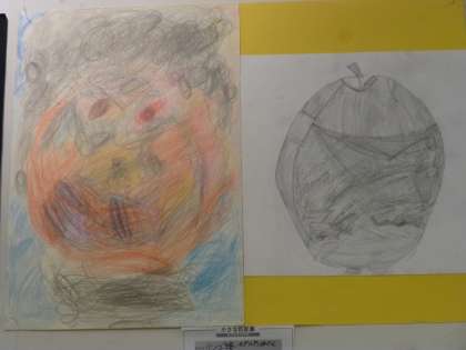 果物とぐるぐる描きのタッチで似顔絵を描きました!