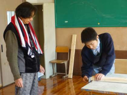 生活の時間で,ベンチづくりの続きです。テストでしばらく間が空いていましたので,久しぶりの作業です。交流学級でテストを受けている仲間もいるので,2人での作業です。協力して,頑張っています。