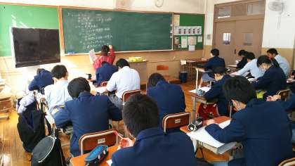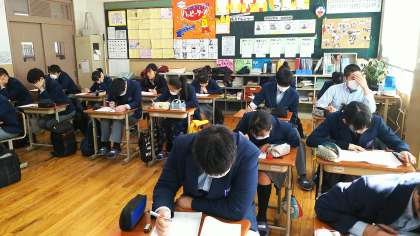 理科・社会の様子です。高校入試問題を解説を交えて取り組んでいます。