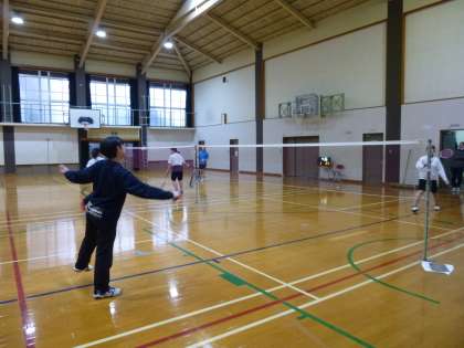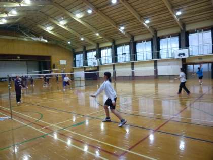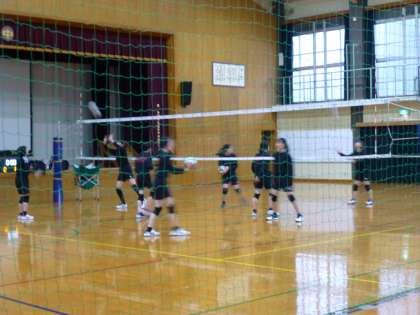 体育館ではバレー部とバドミントン部が練習に励んでいました!