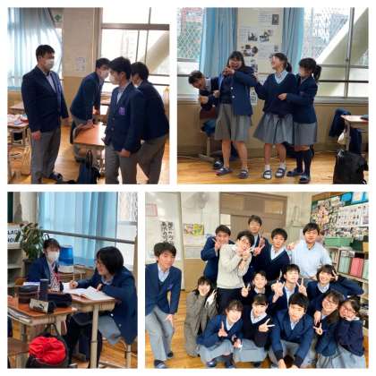 昼休みの室内での様子です。多くの人がグランドでボール遊びに出かけていますが、何人かは教室に残り、ほんわか楽しそうに談笑しています。