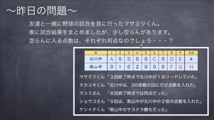 金曜日に公開した「野球の点数」の問題の解説動画です。