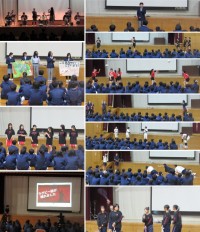 この休校期間に、生徒会担当の先生で床の大掃除をしています。