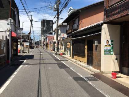 嘉楽中学校の校門前には提灯が目立ちます。この提灯は今宮神社のお祭りの関係の提灯です。例年5月にはお祭りがありますが,今年度はコロナウイルスの関係で自粛だそうです。もともと,疫病や災害などを鎮めるためにスタートした歴史深いお祭りなんですよ。みなさんの地域には歴史深い行事や場所がたくさんあります。