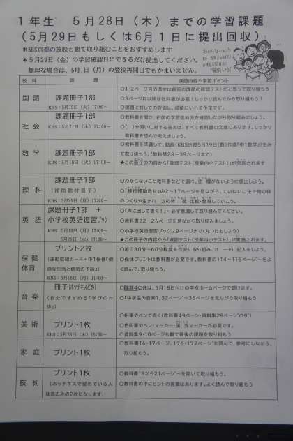 今日の学習相談日に、新たな課題(5月19日〜28日分)を配布しました。