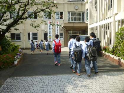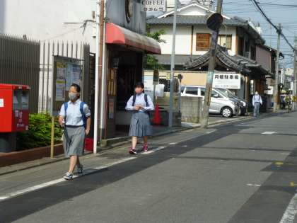 今日は隔日登校の2日目です。名簿番号偶数の生徒たちが元気に登校してきています。今日も一日(半日),頑張りましょう!