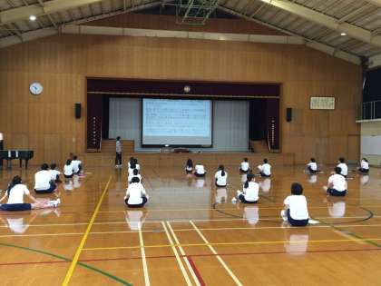 体育科の先生2名から授業を受ける上での諸注意を受けています。