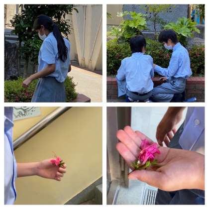 3組の理科では、校門に咲いているサツキツツジを採集し、標本を作成しています。