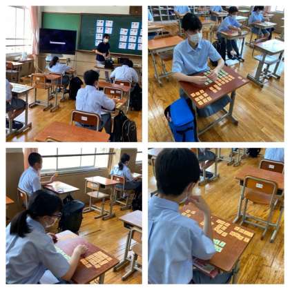4組も英語。アルファベットカードを使って、音の違いを分類分けしています。