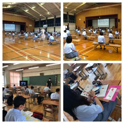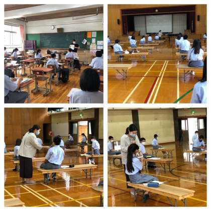 4組は国語。ノートづくりをしました。嘉楽中学校ではノートづくりに力を入れています。