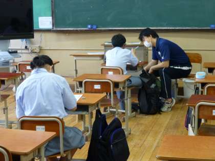 休校期間中の課題を完成させたり,質問をしたり・・。頑張っています!