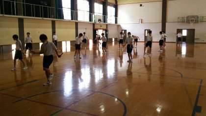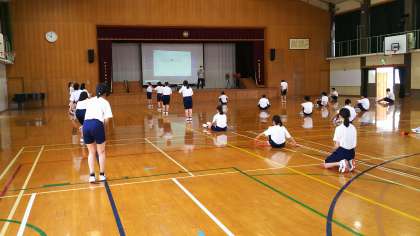 2年2組は体育の授業です。<なわとび>です。いろいろな跳び方を先生の説明とスクリーンの実践を見て練習です。これは難しい。でもみんな体を動かすことが楽しそうでした。