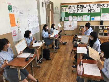 この教具と使用すると,距離をとっていても十分に相手の意見や,学習の状況を確認できます。とても便利です!