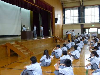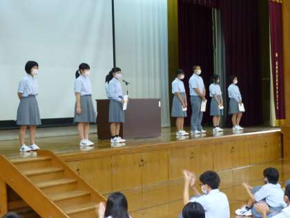 ノート検定&小テストで優秀な成績を残した生徒のみなさんに,学習協力委員長より,賞状が手渡されました。おめでとう!