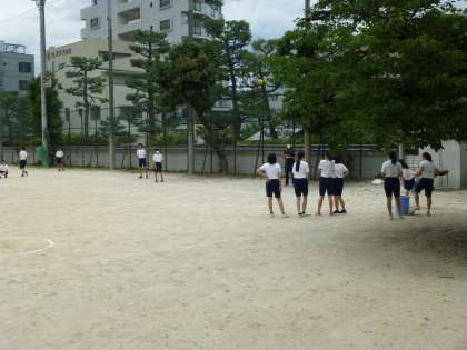 体育では,ハンドボール投ゲをしていました!