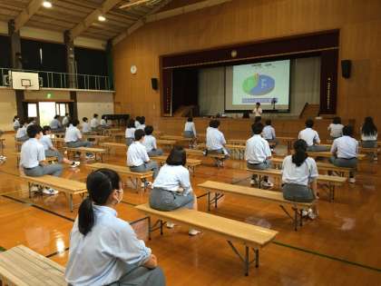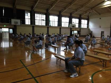 3年生は5時間目に第一回進路希望調査に向けて学年で,進路学活を行いました。