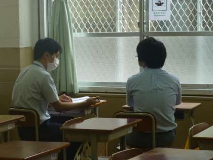 今日から4日間の日程で教育相談が始まりました。休校期間が約2か月続きました。再開後の学校生活はどうですか?もう,以前の感覚は取り戻せましたか?部活動では後輩も入ってきましたね!2年生(先輩)として頑張っている姿がとっても素敵です。この機会に,担任の先生と日ごろの思いを語り合ってください。
