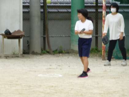体育です。準備体操,筋トレのあと,ソフトボールです。少し柔らかいボールを使って,バッティング練習です。バッター以外は,みんなで守備練習です。しっかり協力して楽しみました!