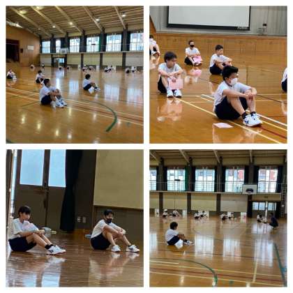 3組は保健体育。ちょうど授業の終わりを見に行ったので、授業の振返りまとめをしていました。皆、真剣に先生からの話を聞いています。今はバレーボールの授業に取り組んでいます。