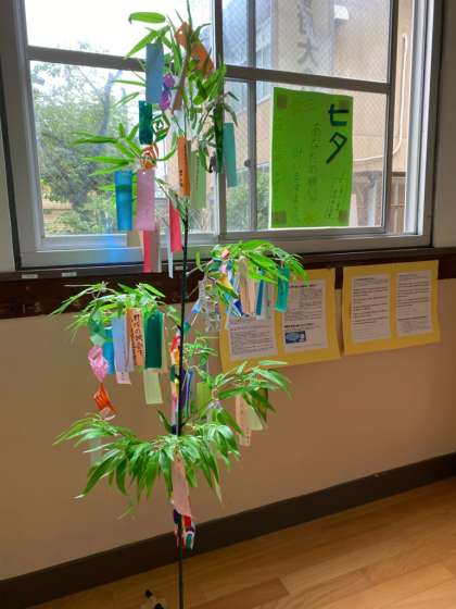 今日は7月7日,あいにくのお天気ですが,七夕です。生徒会が中心となって今年もフロアに笹飾りが飾ってあります。みなさんの願い事を書いた短冊も飾られています。願い事叶うといいですね!