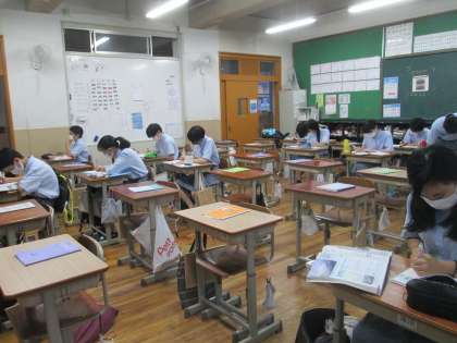 本日,9時〜テスト前の土曜自主学習会が実施されています。来週の火曜日・水曜日のテストに向けてたくさんの参加者です。短い時間ではありますが,一生懸命課題に取り組んでいます。