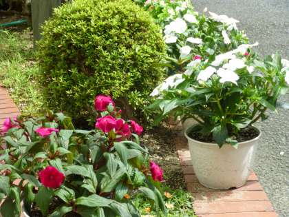 梅雨の長雨が続いていましたが,今朝は雨も上がり,時おり日が差し込み,少しですが晴れ間が戻ってきました!久しぶりの良い天気に,心まで晴れやかになってきますね。正門付近では,色鮮やかな花が待ってましたと言わんばかりに,咲き誇っています!