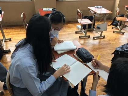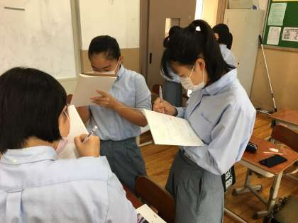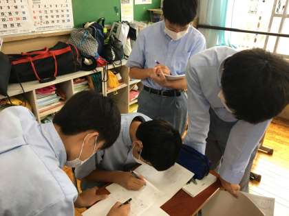一つの課題を解くのに,クラスメートと協力をしながら解いています。