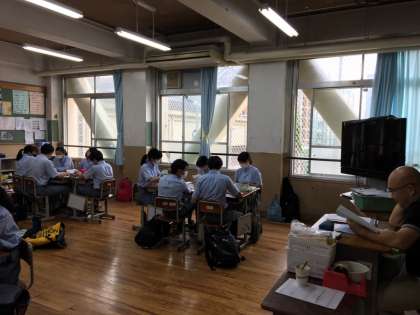 3クラスの先生いずれもユニークな授業を展開され,廊下にまでたくさんの人の意見が聞こえてきていました。