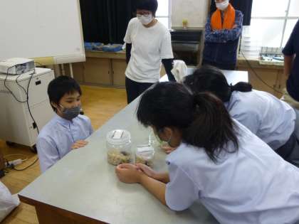 小エビとカブトムシ・クワガタに触れあっていました。みんな興味津々です。いろいろ観察したあとは,スケッチをしました!