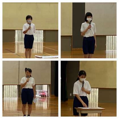 各クラス代表より、クラスの様子や1学期の反省、そして今後のクラスの抱負についての話がありました。どの代表もとてもしっかり自分の言葉で前を向いて話していました。