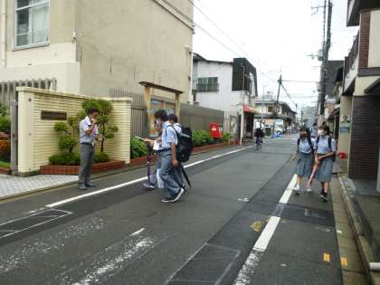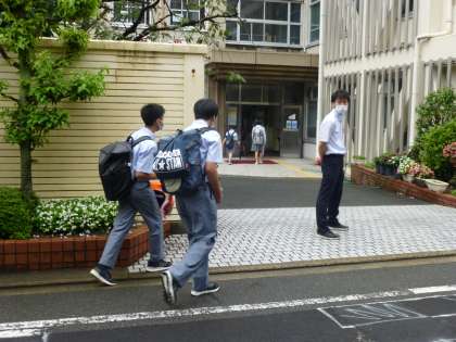 明け方の雨もやみ,みんな元気に登校しています!