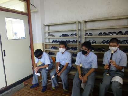 音楽ではリコーダーのテストを行っていました。廊下では緊張しながら順番を待つ生徒の姿が・・。みんな一生懸命です!