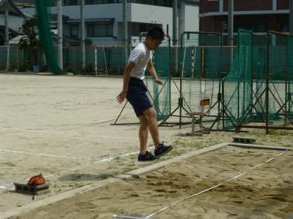 体育です。幅跳びの練習をしていました。短い助走を繰り返し,ジャンプするタイミングを身体で覚えていました!