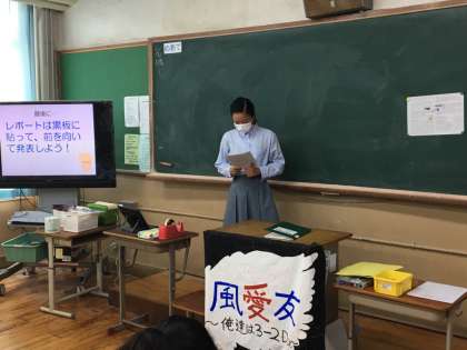 3−2では社会の授業で夏休みの課題の発表を行っていました。