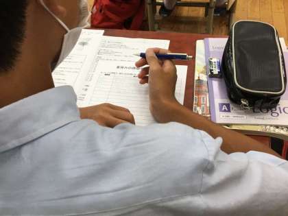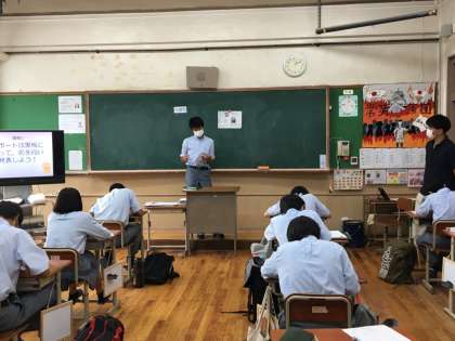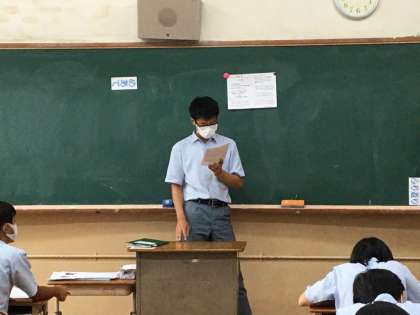 さきほどのクラスと同じように,夏休みの課題の発表を行っていました。