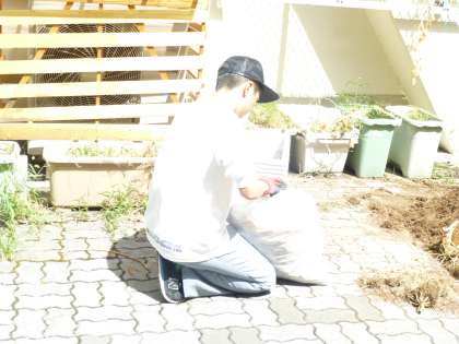 生活です。夏の間に栽培していたトマト・ししとう・なすび等の収穫が終わりましたので,次の作物(秋〜冬にかけて)の準備に入っています。暑い中,みんな頑張っていますね!